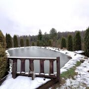 Участок спланирован: уложена тротуарная плитка, предусмотрены банный комплекс, пруд и уютная беседка.
