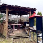 Дом очень теплый зимой и прохладный летом. Для создания уюта установлены камин и печь, а встроенная кухня с газовой плитой и качественным гарнитуром делает пространство удобным для проживания.