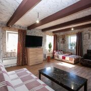 - Коммуникации: электричество (электрообогрев дома, нагрев воды и кухонная плита по льготному тарифу) , центральный водопровод, местная канализация. Газопровод проходит по дороге вдоль дома.