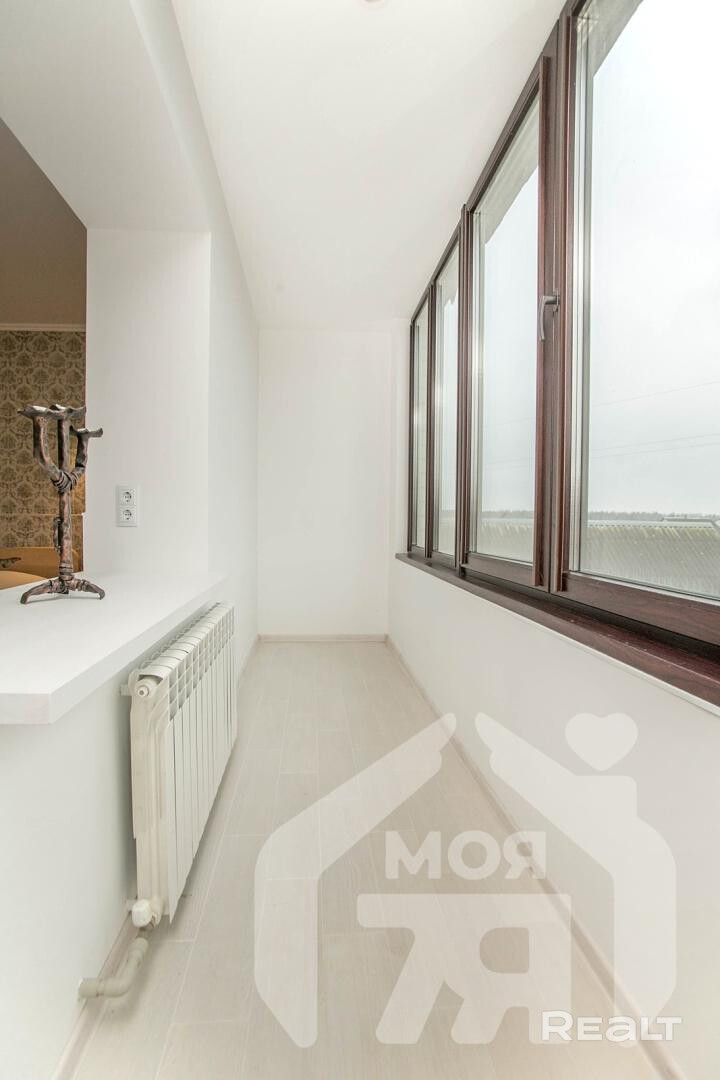 -Большая утеплённая лоджия воспринимается почти как отдельная комната - панорамные окна, декоративные панели и плиточный пол создают светлое пространство, которое можно использовать как зимний сад, кабинет или зону релакса.