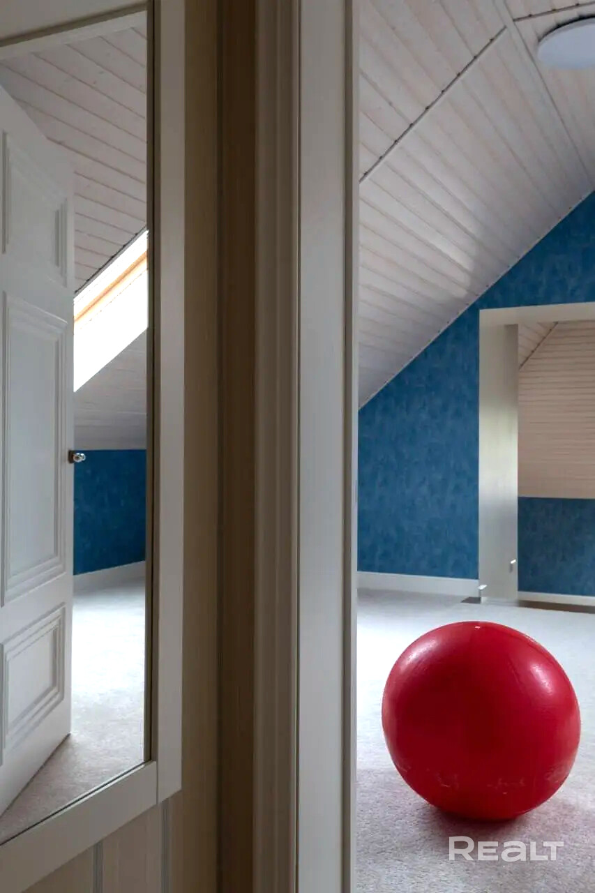 На втором этаже находятся три уютные спальни, каждая из которых оформлена с заботой о вашем комфорте. Также здесь расположены два дополнительных санузла и спортивная комната, где можно поддерживать форму, не выходя из дома.