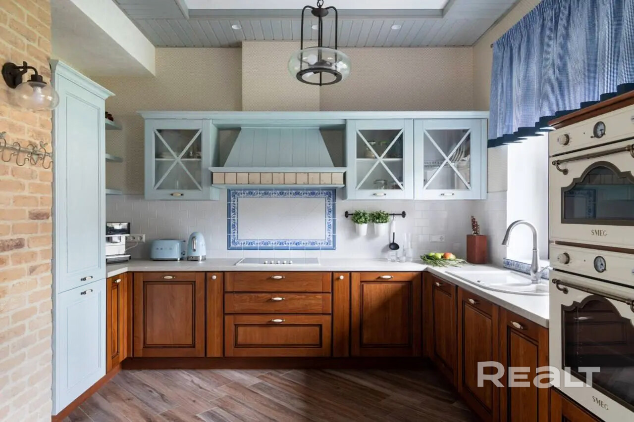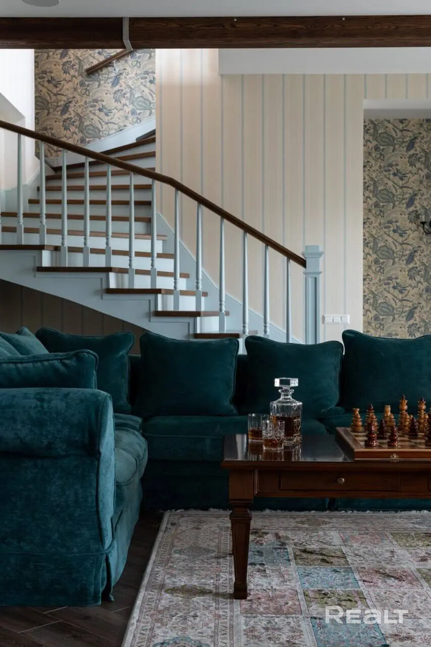 Этот двухуровневый дом площадью 358.3 квадратных метров воплощает в себе сочетание роскоши и уюта, выполненный в стиле кантри.