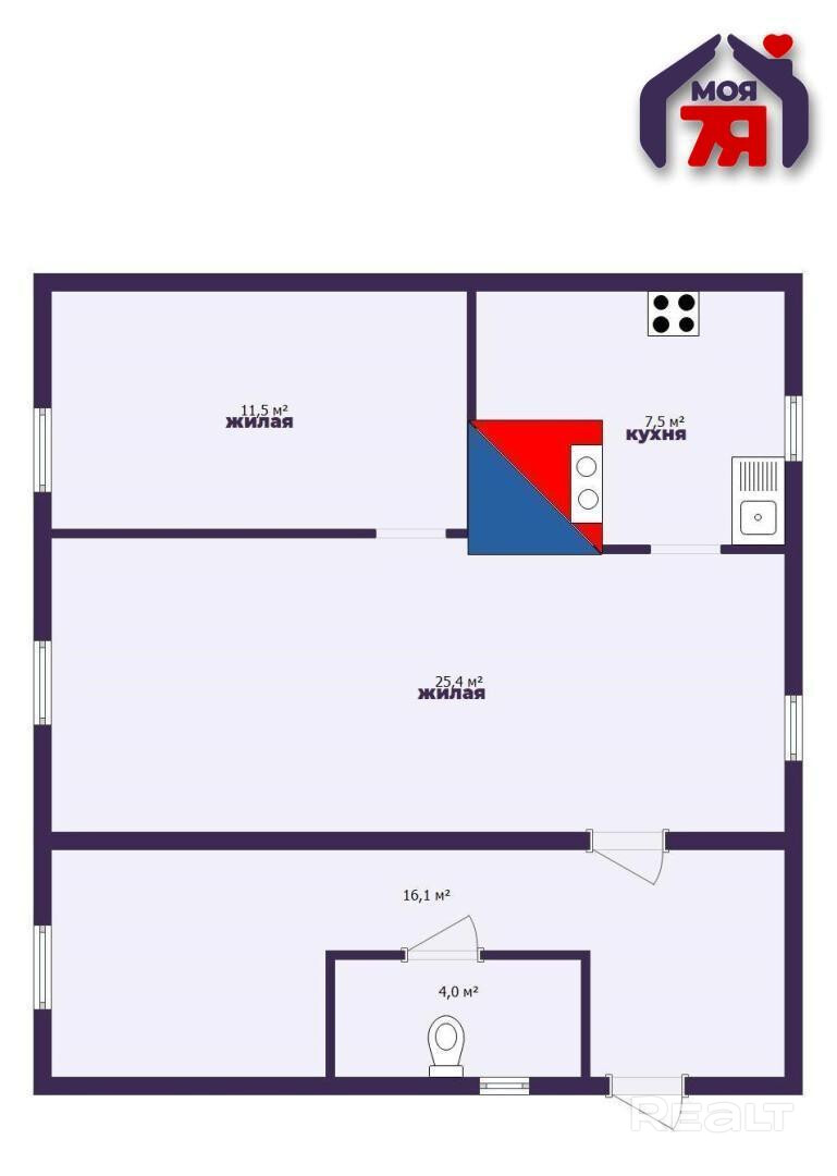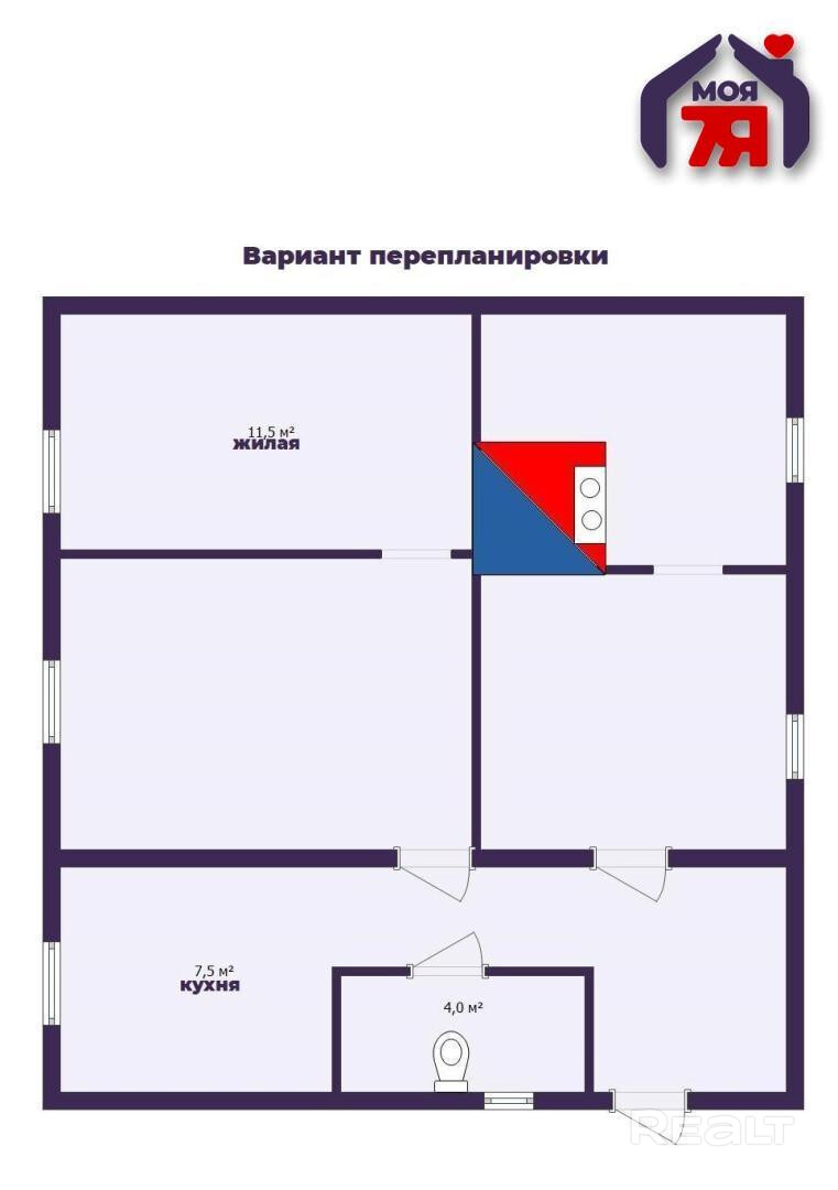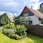 - В 2015 году дом был полностью обложен кирпичом, а крыша заменена на современную стропильную систему с прочным шифером. Была также возведена дополнительная пристройка, увеличившая жилую площадь. Общая площадь дома составляет 64 м2.