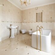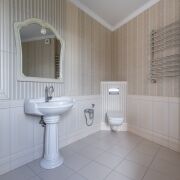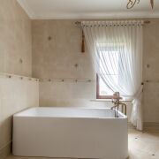 -Плитка Италия и унитаз Villeroy & Boch, умывальник с пьедесталом Porta, сантехника брендовая.