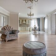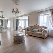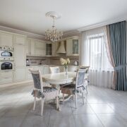 - Мебель (стол, стулья) российского производства премиум-сегмента, ламинат на полу, итальянский обеденный стол.