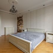 -Мебель из натурального дерева. Итальянские обои «Roberto Cavalli». Паркет из берёзы под лаком.