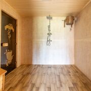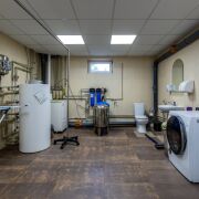 Просторный подвал, частично облицованный натуральным камнем, на полу уложена плитка (цокольный этаж 155м2):