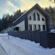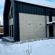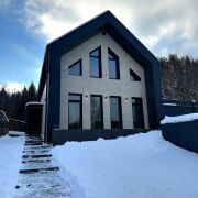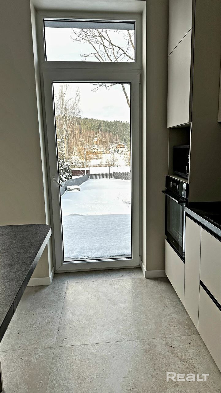 Коттедж введён в эксплуатацию в 2025 году, в нём никто не проживал. Кухня-гостиная с панорамным остеклением и видом на водоём — ключевая особенность объекта. Участок граничит с лесным массивом, что обеспечивает тишину и уединение.