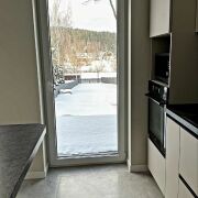 кухня-гостиная с панорамным остеклением и видом на водоём