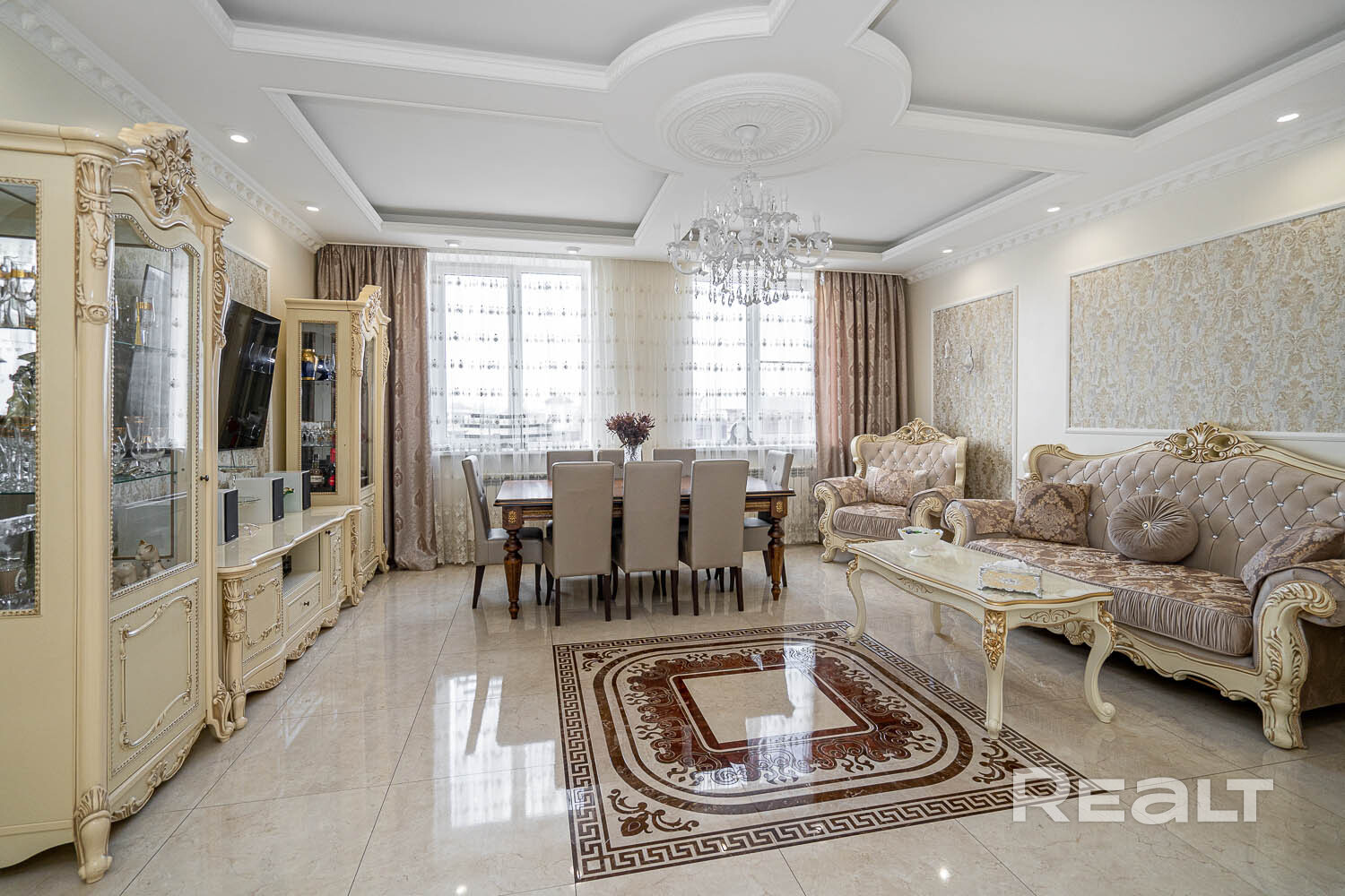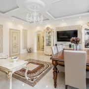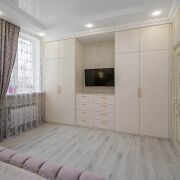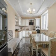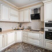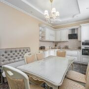 -Установлен дизайнерский кухонный гарнитур из массива с механизмами GTV и BLUM со встроенной техникой: духовой шкаф, варочная панель, вытяжка, посудомоечная машина, холодильник.