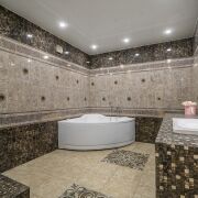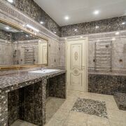 -Пол в жилых комнатах выполнен из влагостойкого ламината EGGER (Германия), в остальных помещениях плитка.