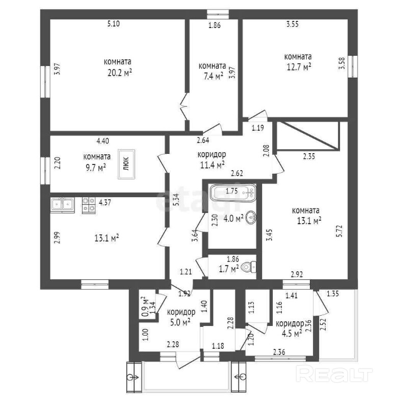 – 5 раздельных комнат