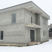 Стены: газосиликатные блоки 400 мм + утепленный и оштукатуренный фасад.