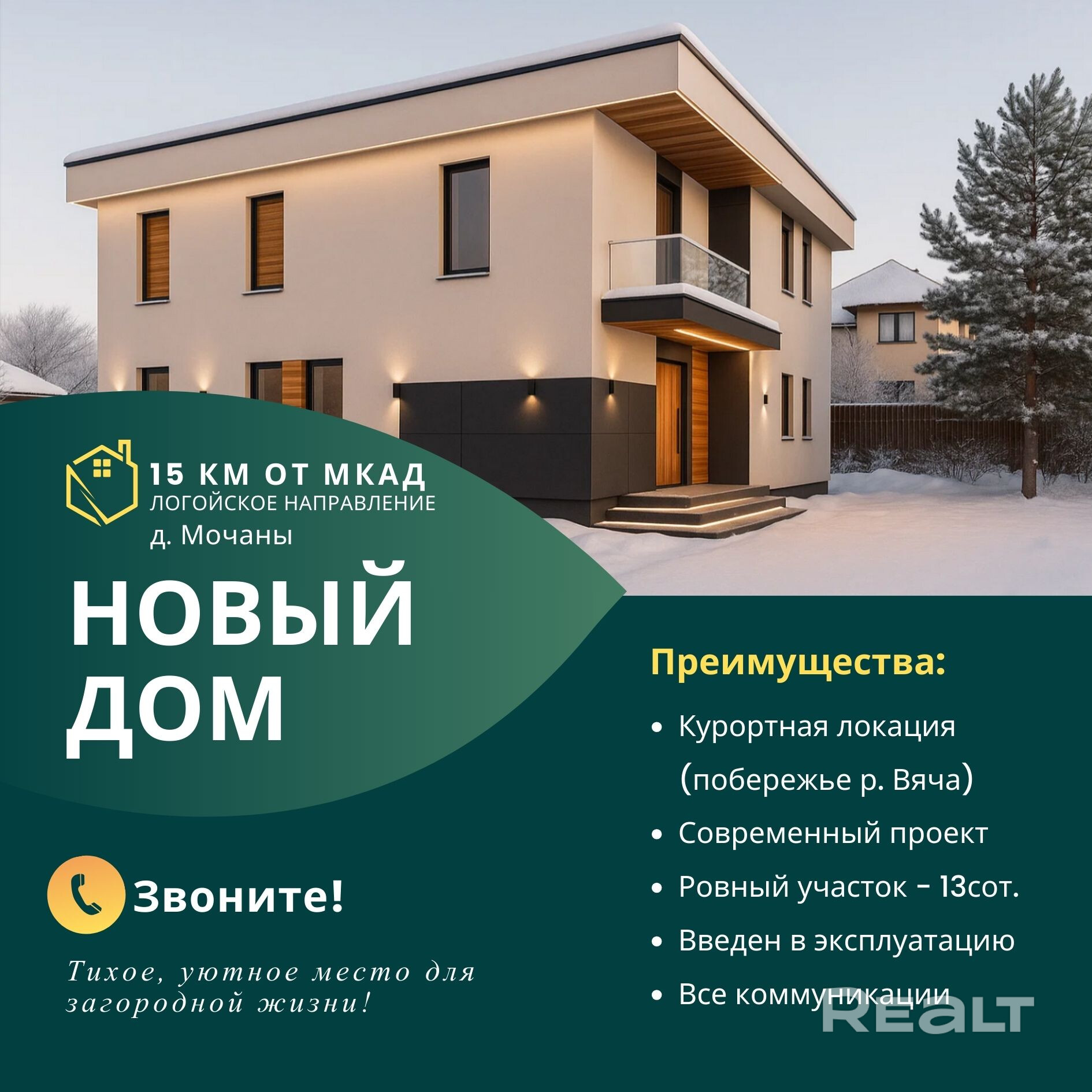 Продается современный коттедж на берегу реки Вяча. Ваш идеальный формат жизни: 18 км от Минска и 100% природы.