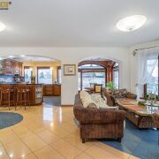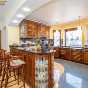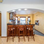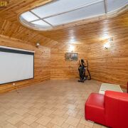 Двойной свет и высокие потолки меблированного холла, арочный вход в гостиную, столовую и кухонную зону создают единое перетекающее пространство с камином. Просторная кухня с мойкой у окна, встроенная мебель и техника, удобная барная стойка. На втором этаже расположена зона спален с санузлами и гардеробной, а так же кинозал. Помещение бани, бассейнов, зоны отдыха с душевыми, топочной с оборудованием VIESSMAN и зоной хранения расположены на уровень ниже, здесь же есть выход на участок. Грамотно обустроеный участок и рельефная, изогнутая скатная крыша подчеркивают красоту сооружения. Покупка этого дома - реализация мечты о загородной жизни в границах огромного города.