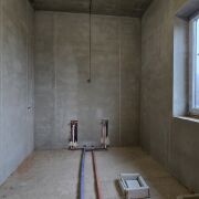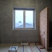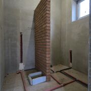 - Внутренние стены – г/с блоки + кирпич, оштукатурены.