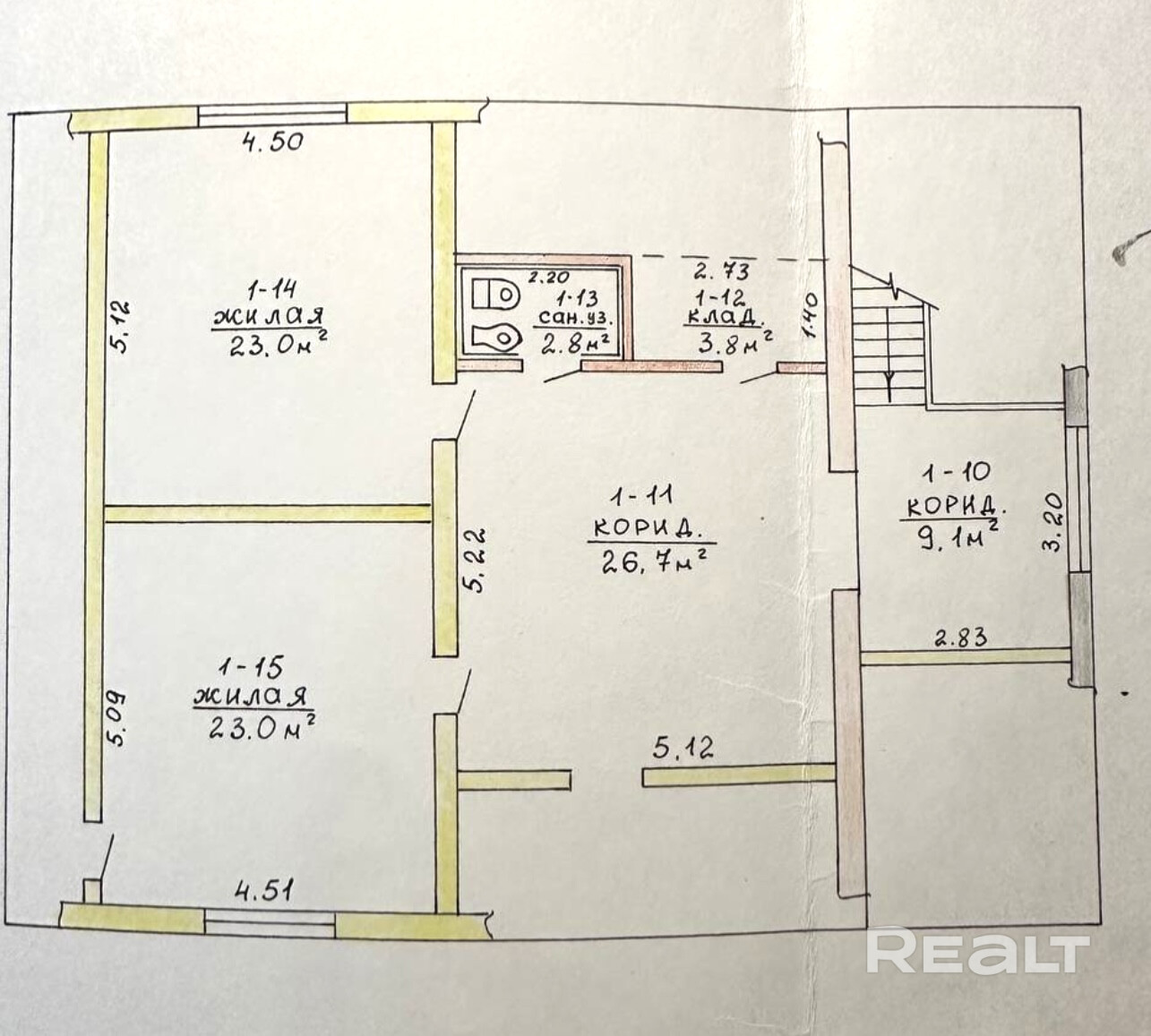 2. На втором этаже размещаются просторные две спальни по 23.0 кв.м, сан.узел (2.8 кв.м.), большой коридор с выходом в кладовую (можно использовать, как гардеробную).
