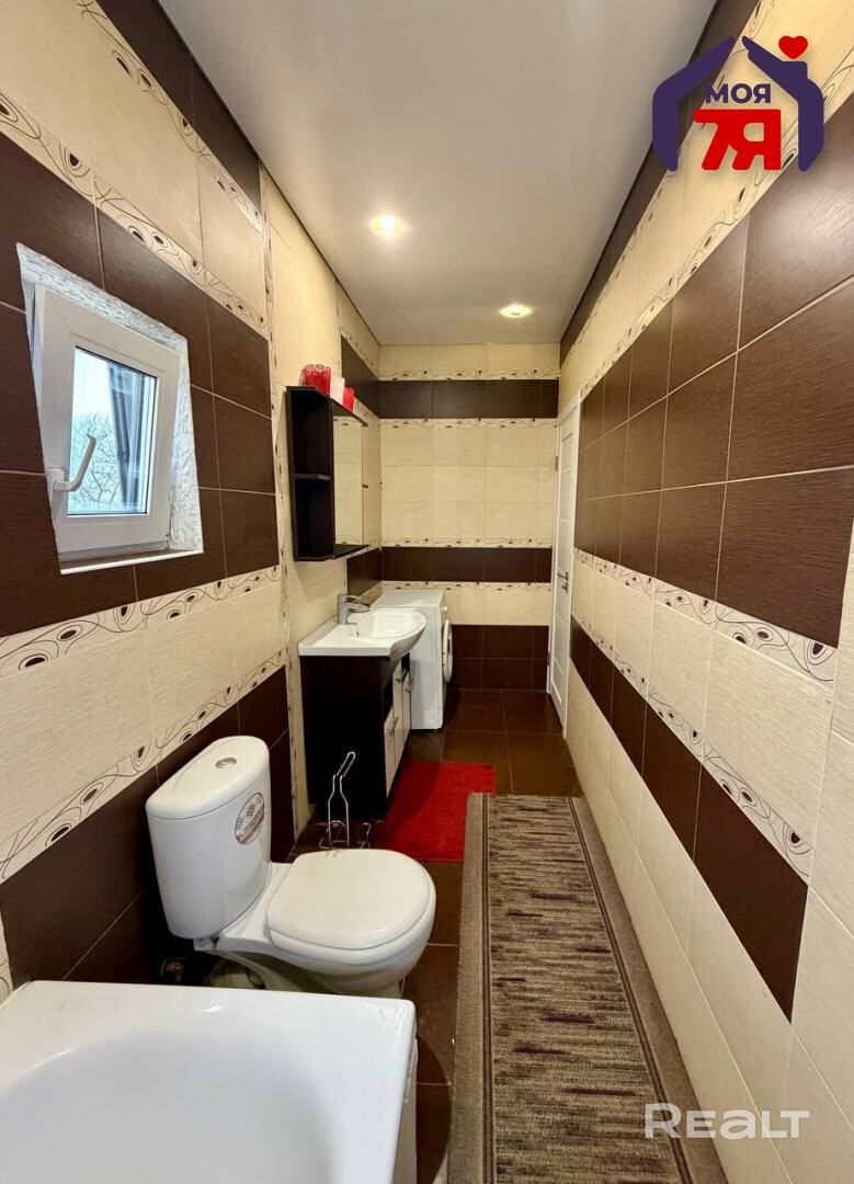 - Внутреннее пространство оформлено с вниманием к деталям. В комнатах уложен ламинат, создающий цельное и аккуратное покрытие. В кухне, коридоре, санузле и топочной установлены тёплые полы. Потолки натяжные, окна ПВХ, межкомнатные двери. Крыша покрыта металлочерепицей, что придаёт дому аккуратный и современный вид. Отопление обеспечивает двухконтурный котёл, установленный менее двух лет назад. Встроенная кухня и часть мебели остаются при продаже, что позволяет сразу использовать дом без дополнительных вложений.