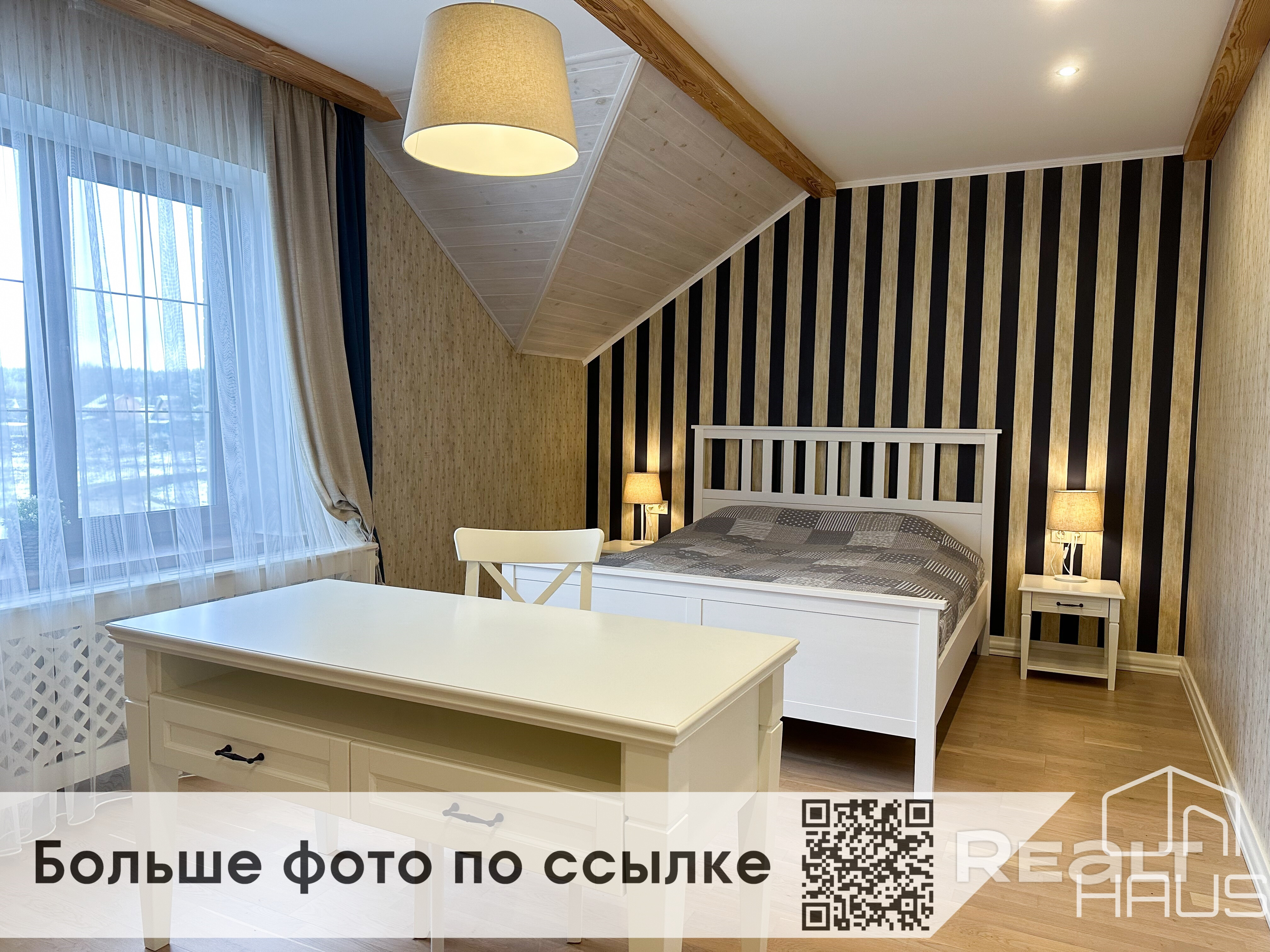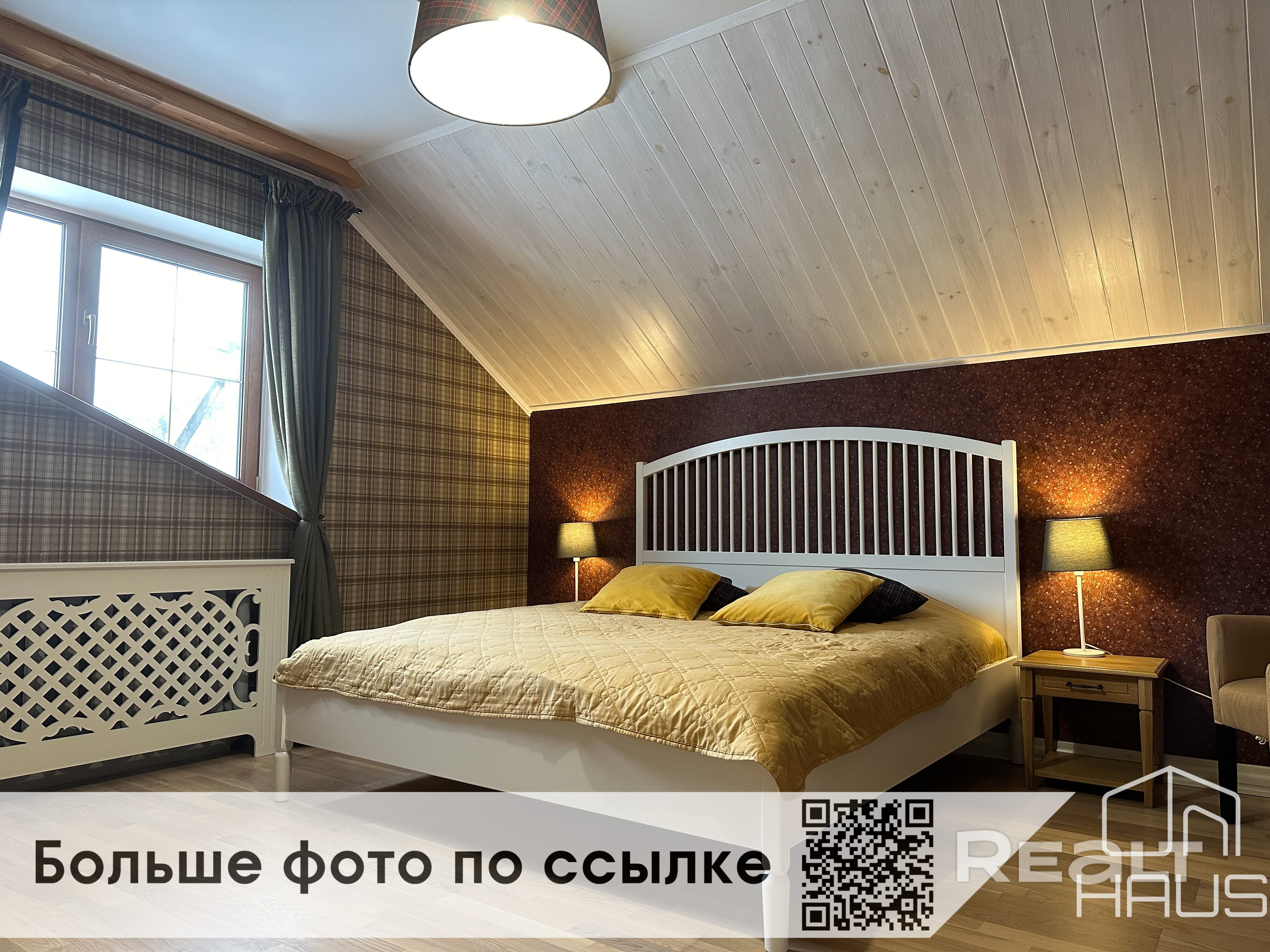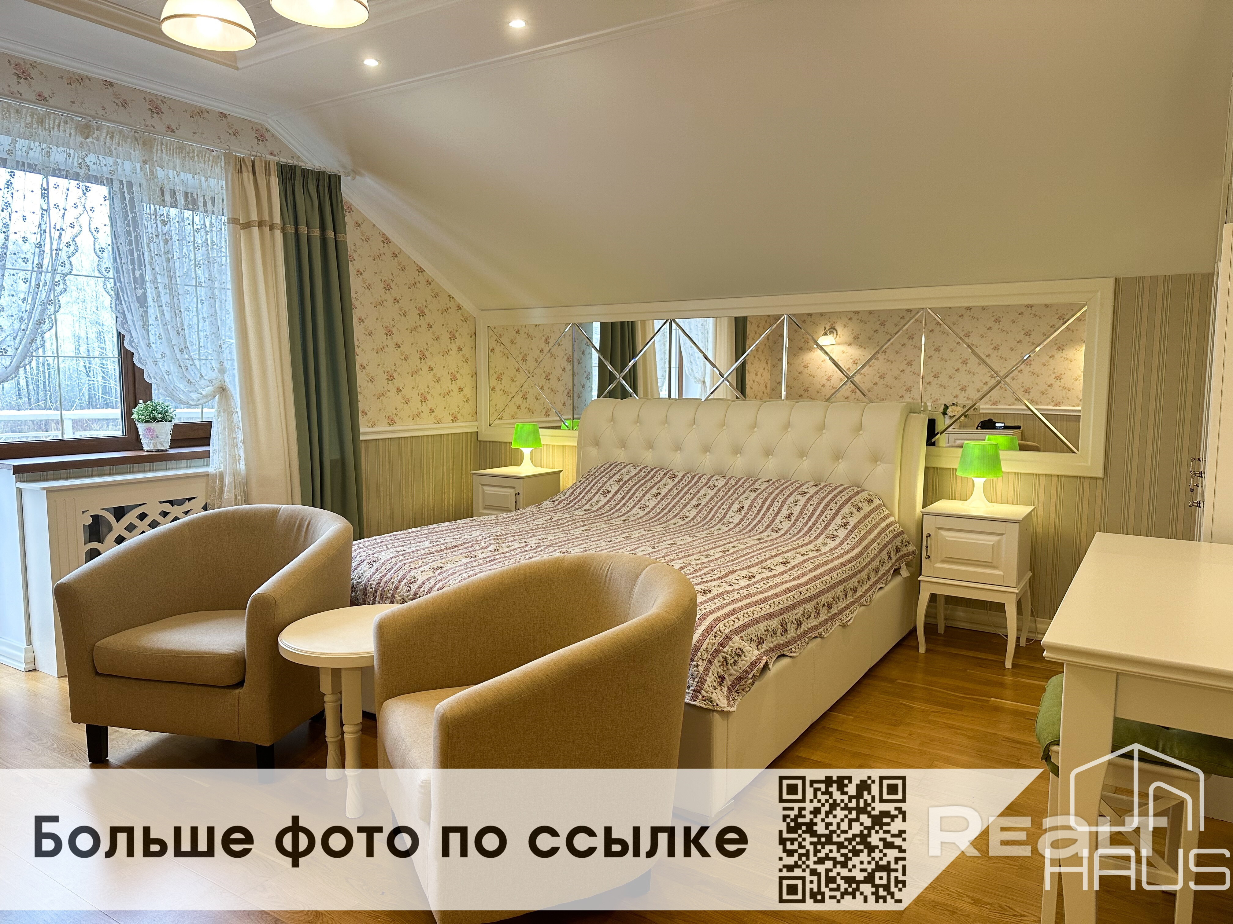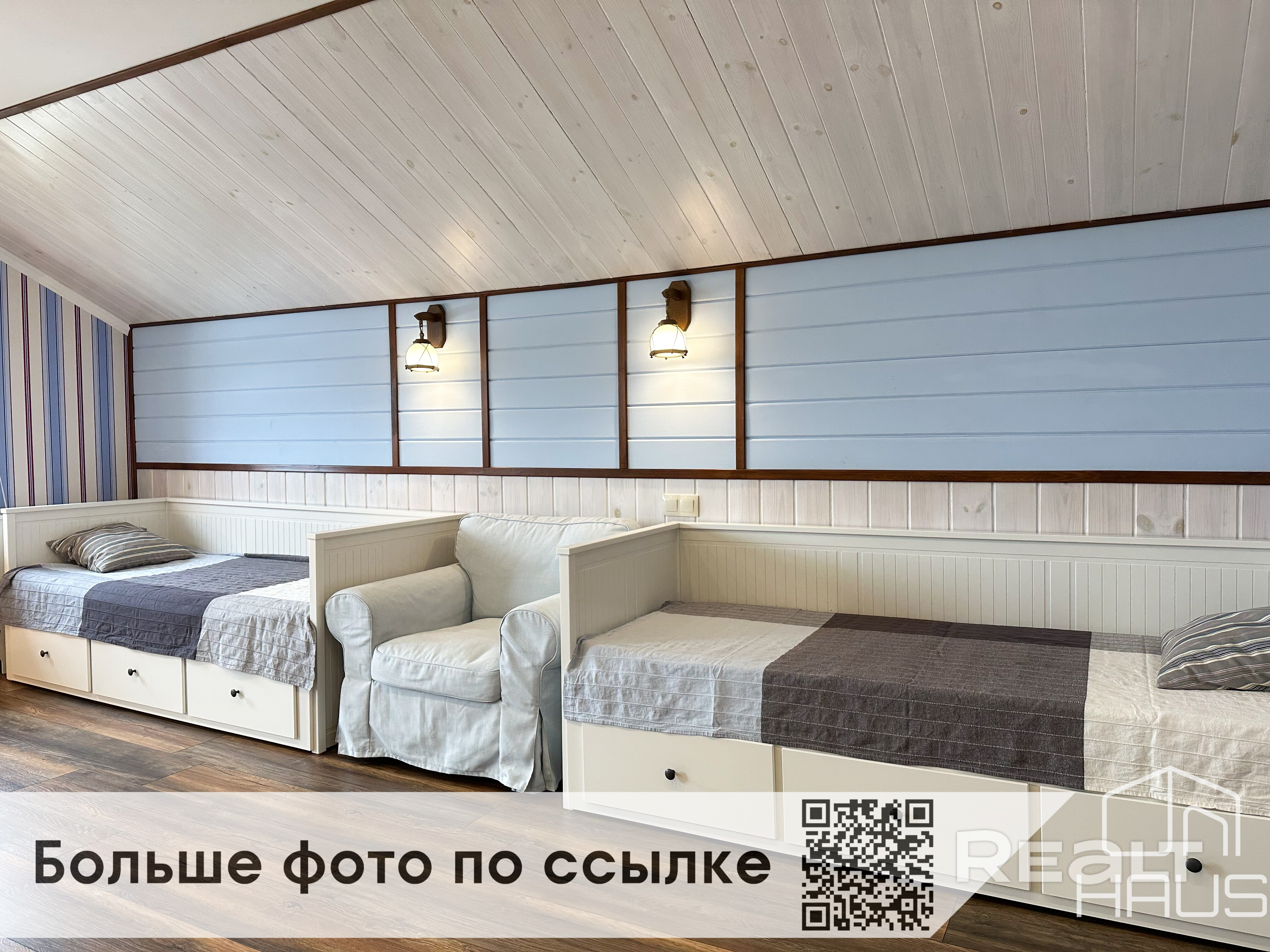 Прекрасное место для отдыха от городской суеты и комфортной жизни. Свой выход к реке Березина, граница участка проходит по берегу реки. Собственный причал. Из окон и с балкона открывается прекрасный вид. Ландшафтный дизайн с подсветкой на территории. Декоративное освещение. Баня с бассейном. Спортивная площадка. Вода превосходного качества с оптимальными гигиеническими показателями. Спутниковое ТВ.
