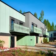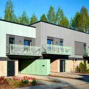Таунхаусы – это блокированные дома, в которых расположены двухэтажные квартиры площадью 134 квадратных метров с отдельными входами и собственным земельным участком. Дома образуют закрытый внутренний двор с благоустроенными зонами отдыха и барбекю. Парковки для автомобилей вынесены за периметр двора. Скандинавский стиль оформления домов прекрасно вписан в природный ландшафт, а развитая инфраструктура и полная самодостаточность комплекса вдохновляют на активную насыщенную жизнь.