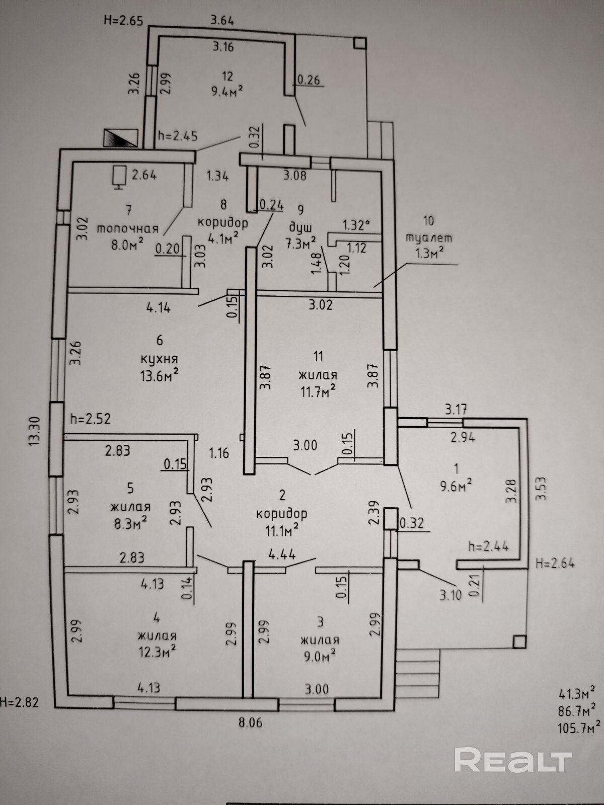 4 жилые комнаты, просторная кухня, топочная, санузел, 2 входа. Есть возможность сделать мансардный этаж. Полы с подогревом, плюс радиаторы отопления. Окна ПВХ.