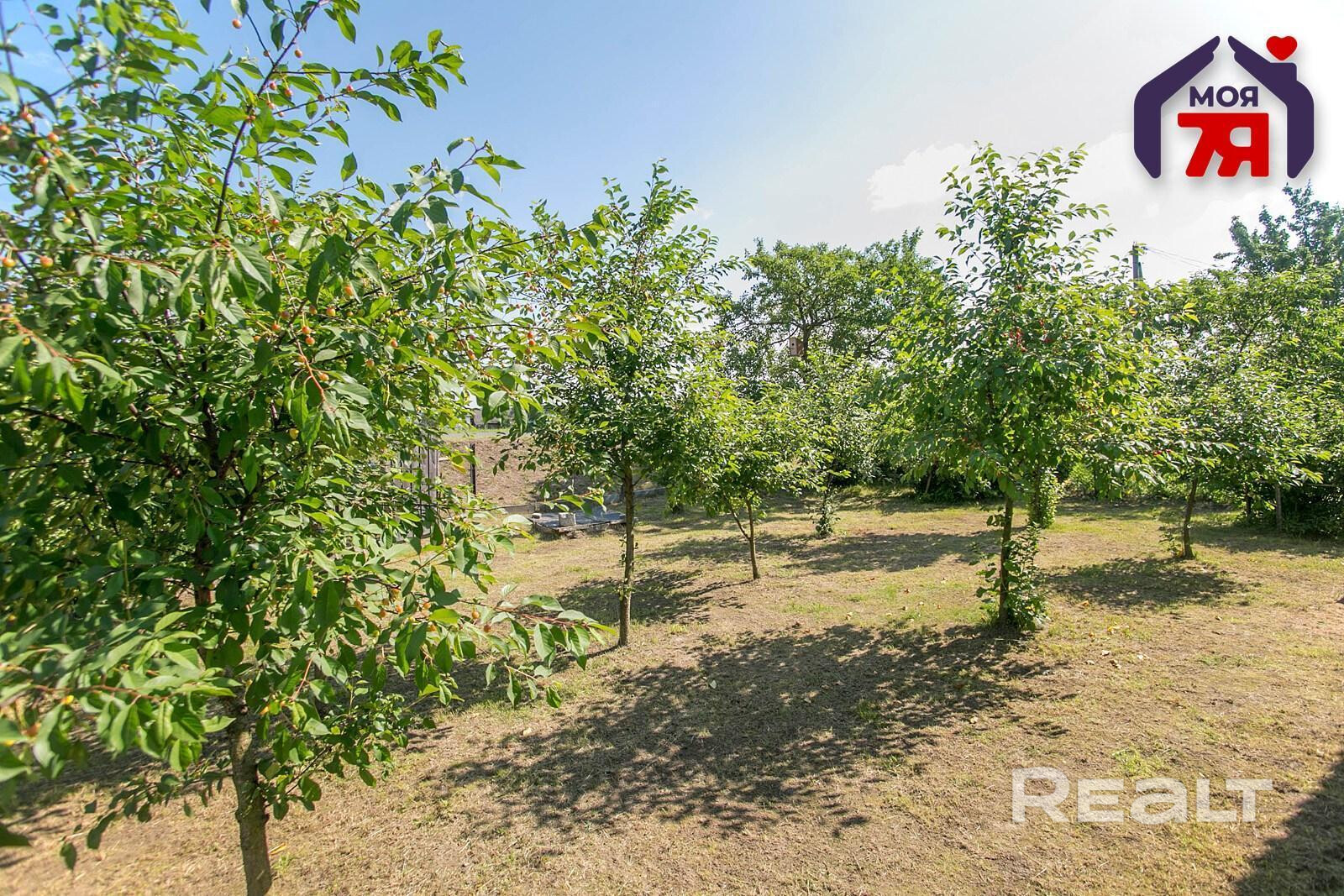 -Но главное преимущество этого предложения - прилегающий собственный участок в 9,5 соток. Он полностью огорожен, ухожен и утопает в зелени плодовых деревьев и кустарников.