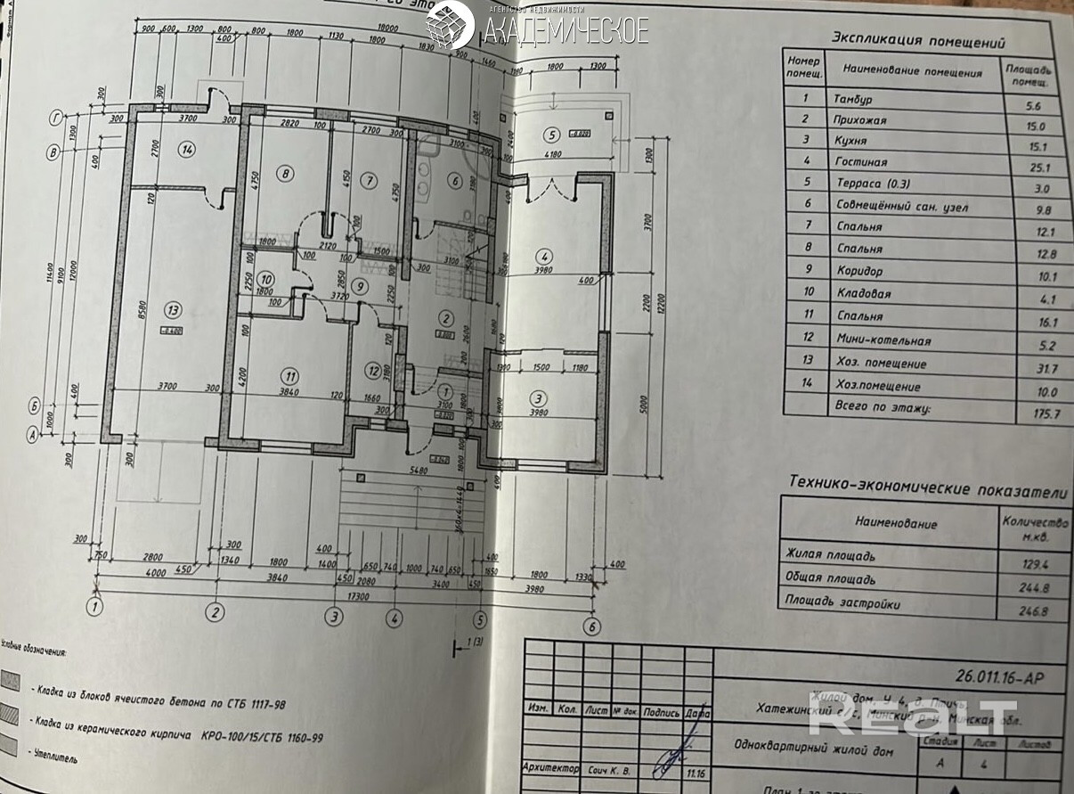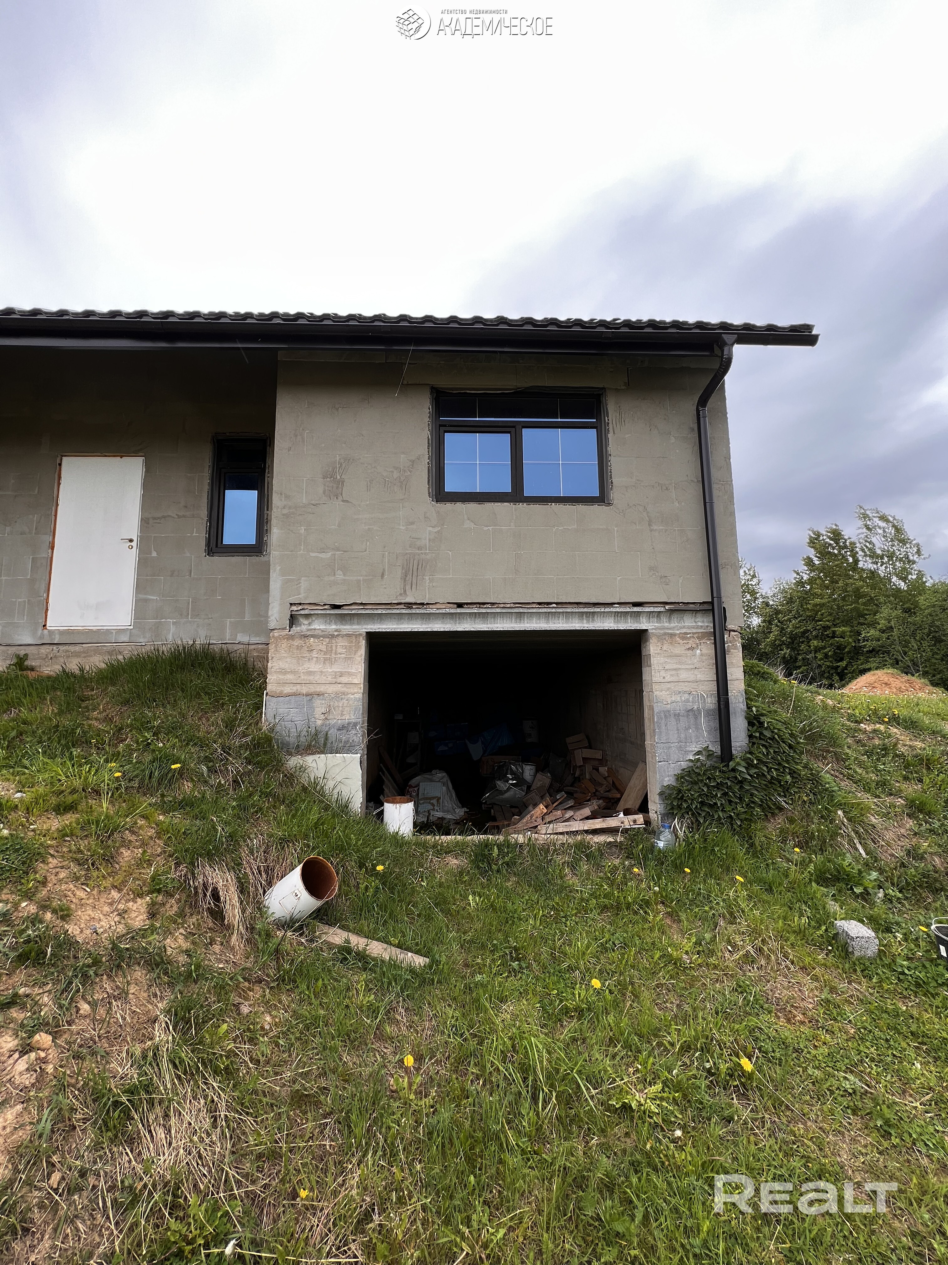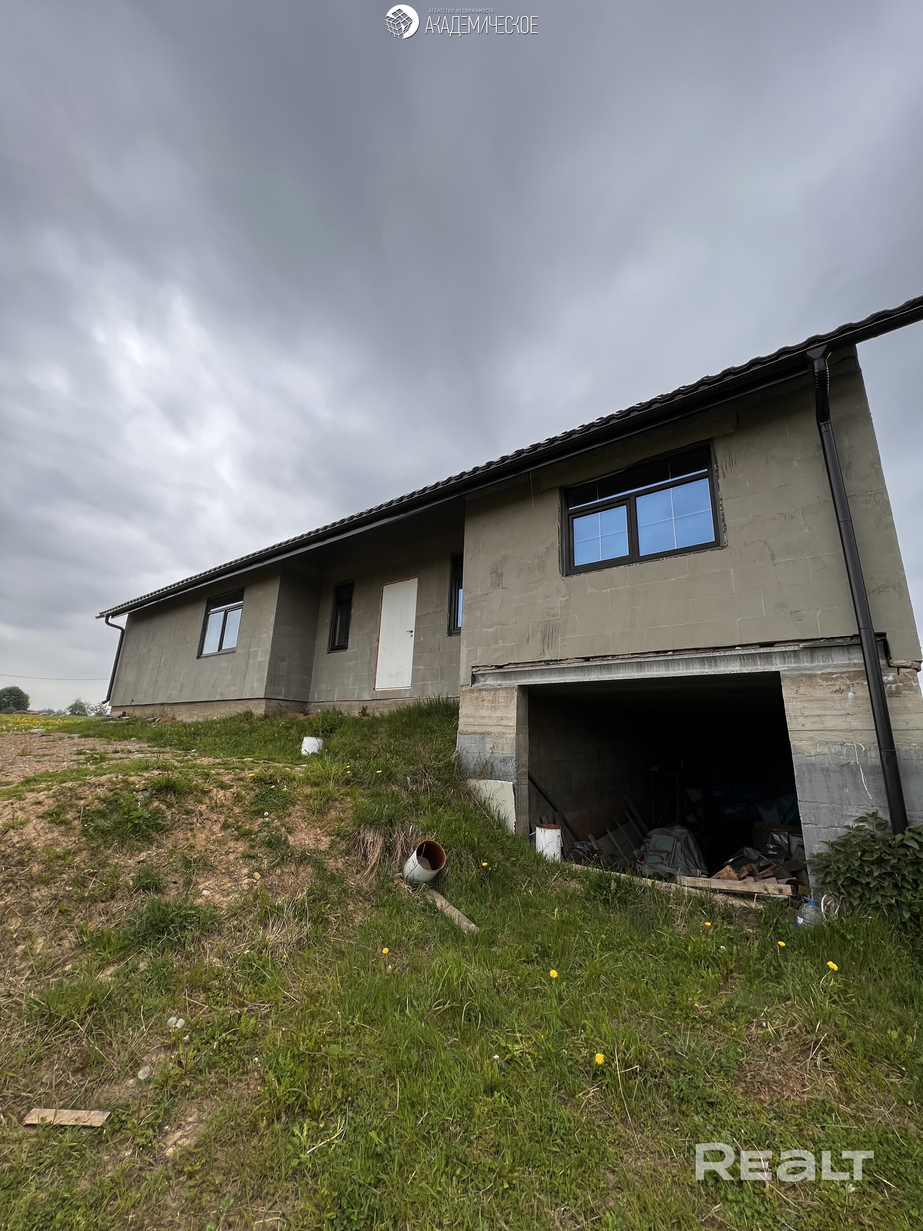 Ленточный фундамент, стены из силикатных блоков, оштукатурен, крыша – глянцевая металлочерепица утеплена, окна ПВХ со шпросами. Деревянные перекрытия на второй этаж. Без внутренней отделки.