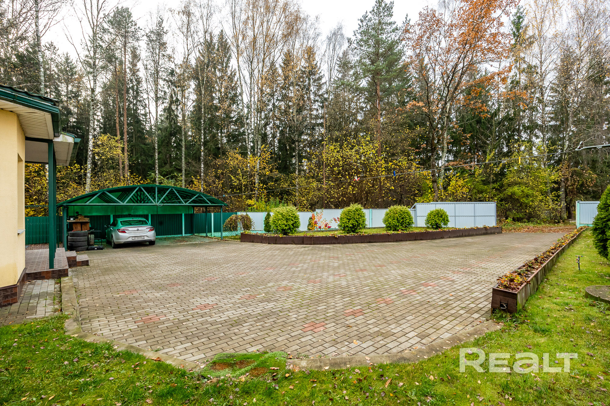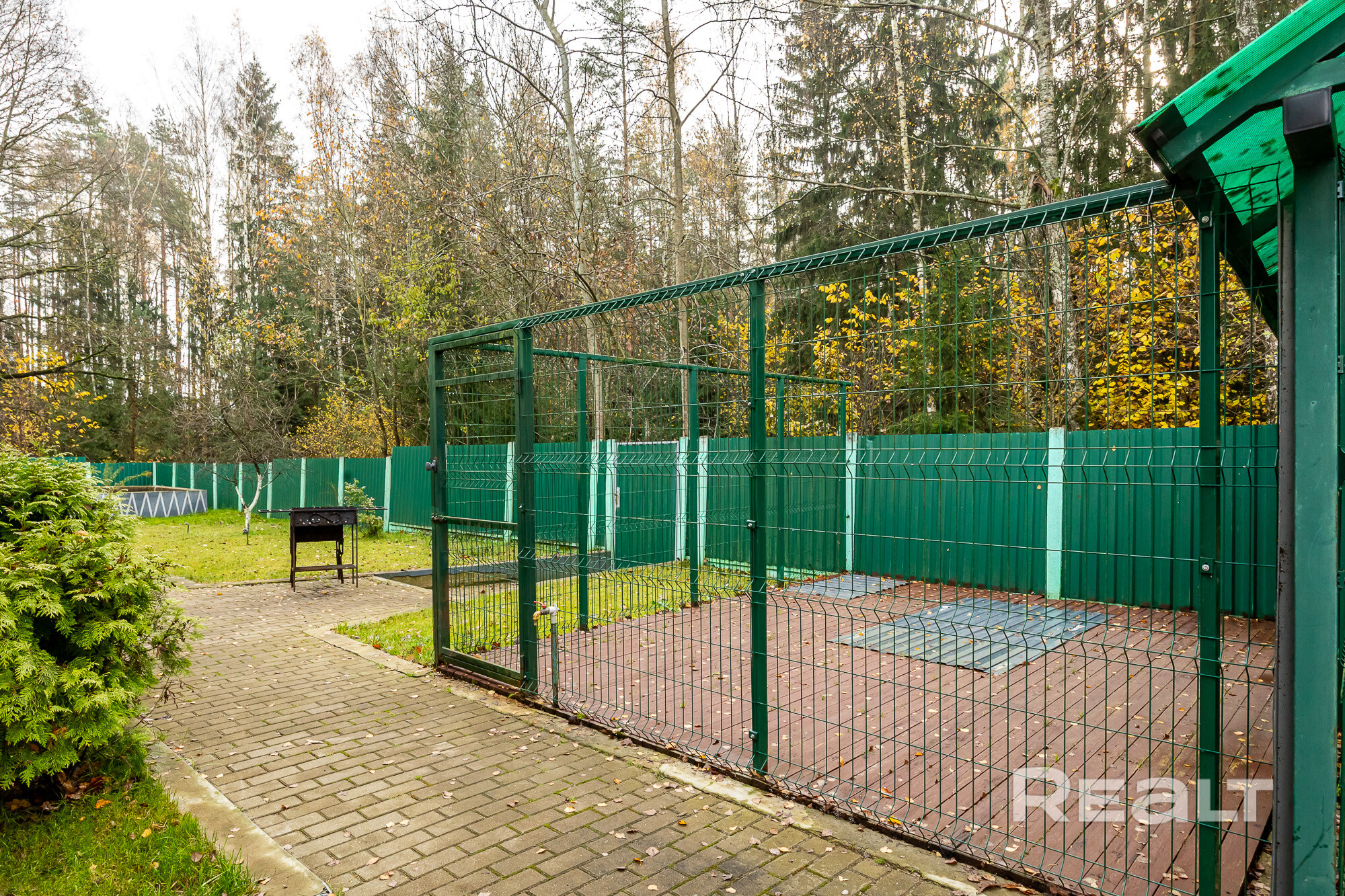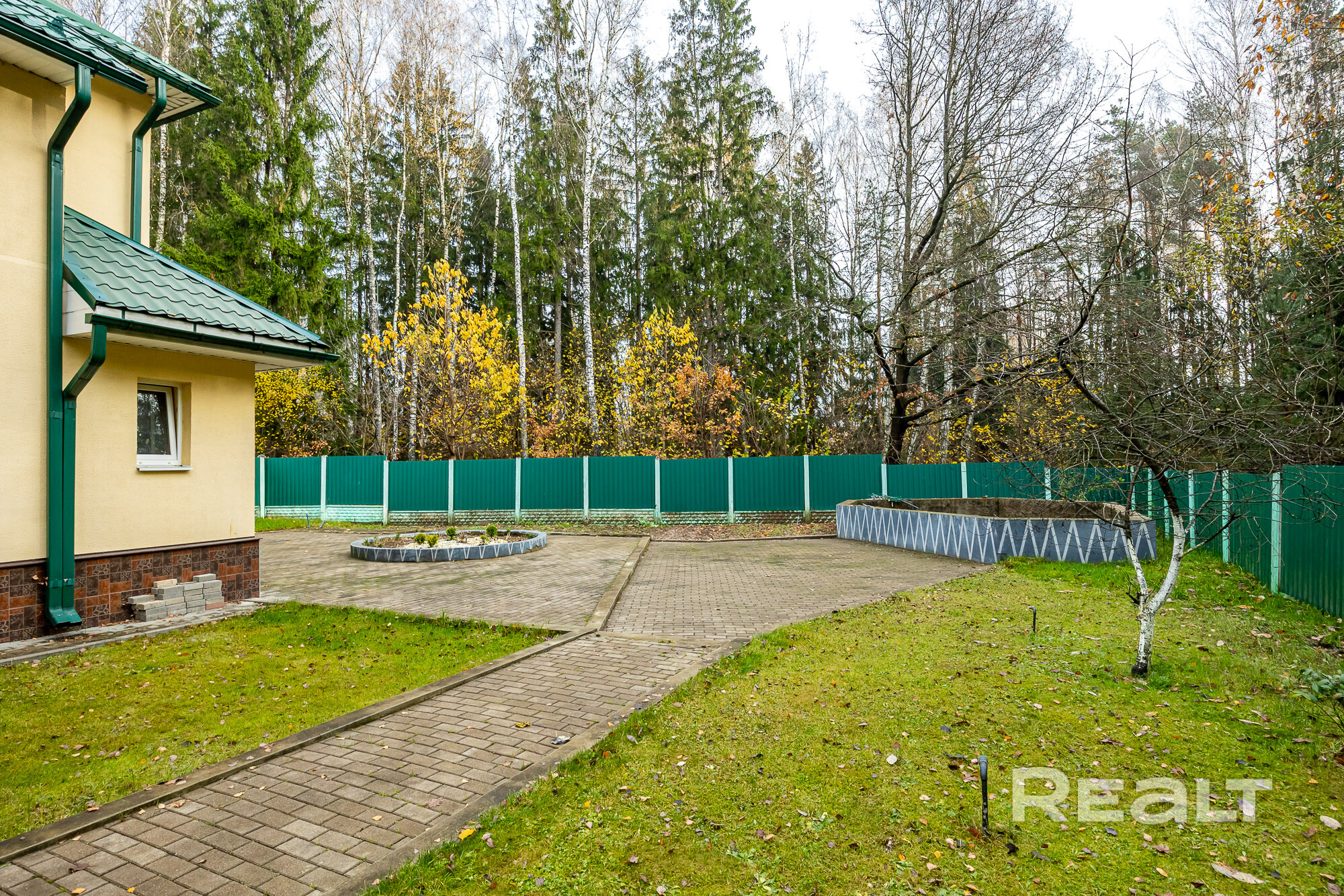 Участок – 9,5 соток, частная собственность. Расположен в живописном месте - крайний участок, вплотную примыкающий к лесу с прекрасной панорамой. Выполнены ландшафтные работы, бассейн – 24 кубических метра, навес на 2 машины, автополив участка, вольер.