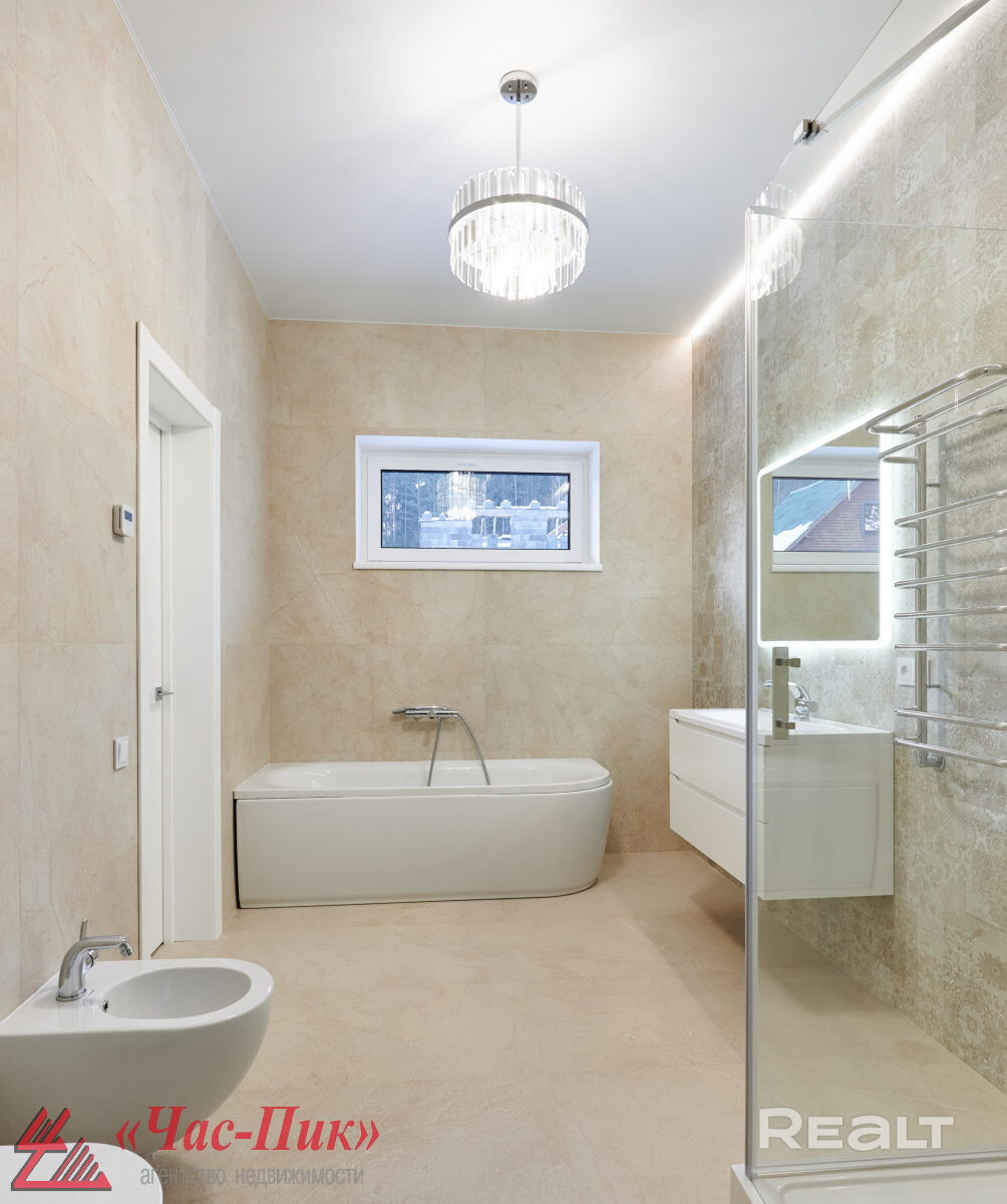 -Энергоэффективный дом, в котором никто не проживал, построенный по индивидуальному архитектурному дизайн-проекту; продуманная архитектурная планировка (три спальни площадью по 15 м2 каждая, жилая с кухонным оборудованием и камином площадью 53 м2, гардероб, два санузла, постирочная, топочная); все строительные и отделочные работы выполнялись по проектным чертежам, в строгом соответствии с технологическими процессами и знаниями новейших тенденций современного загородного строительства; высококачественные лучшие импортные материалы строительства и отделки; европейская премиальная: