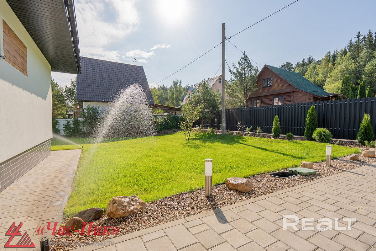 -Земельный участок 14 соток, ландшафтный дизайн, автополив, газон, декоративное освещение, мощение тротуарной плиткой, дождеприёмники;
