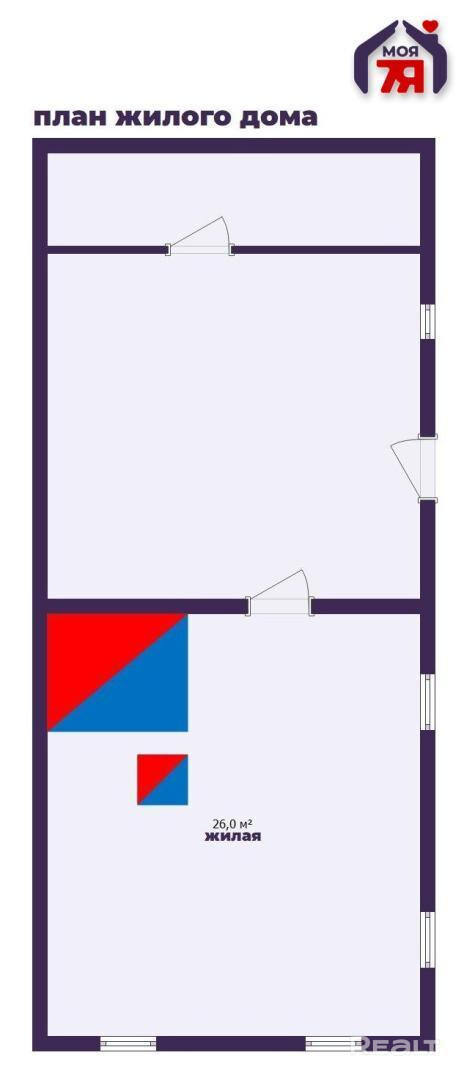 - Общая площадь дома составляет 74 м2, в доме имеется одна жилая комната 26 м2, вместительная кладовая.