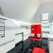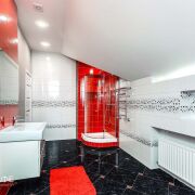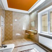На полу: в местах общего пользования – испанский керамогранит с системой подогрева пола, во всех жилых комнатах – высокого класса износостойкости ламинат.