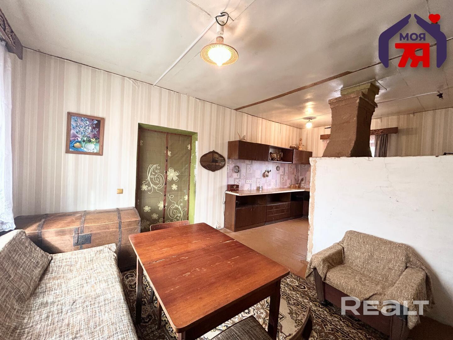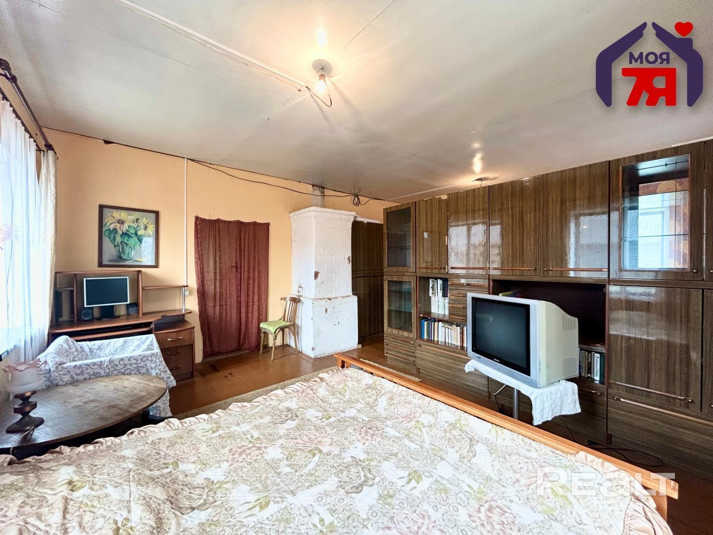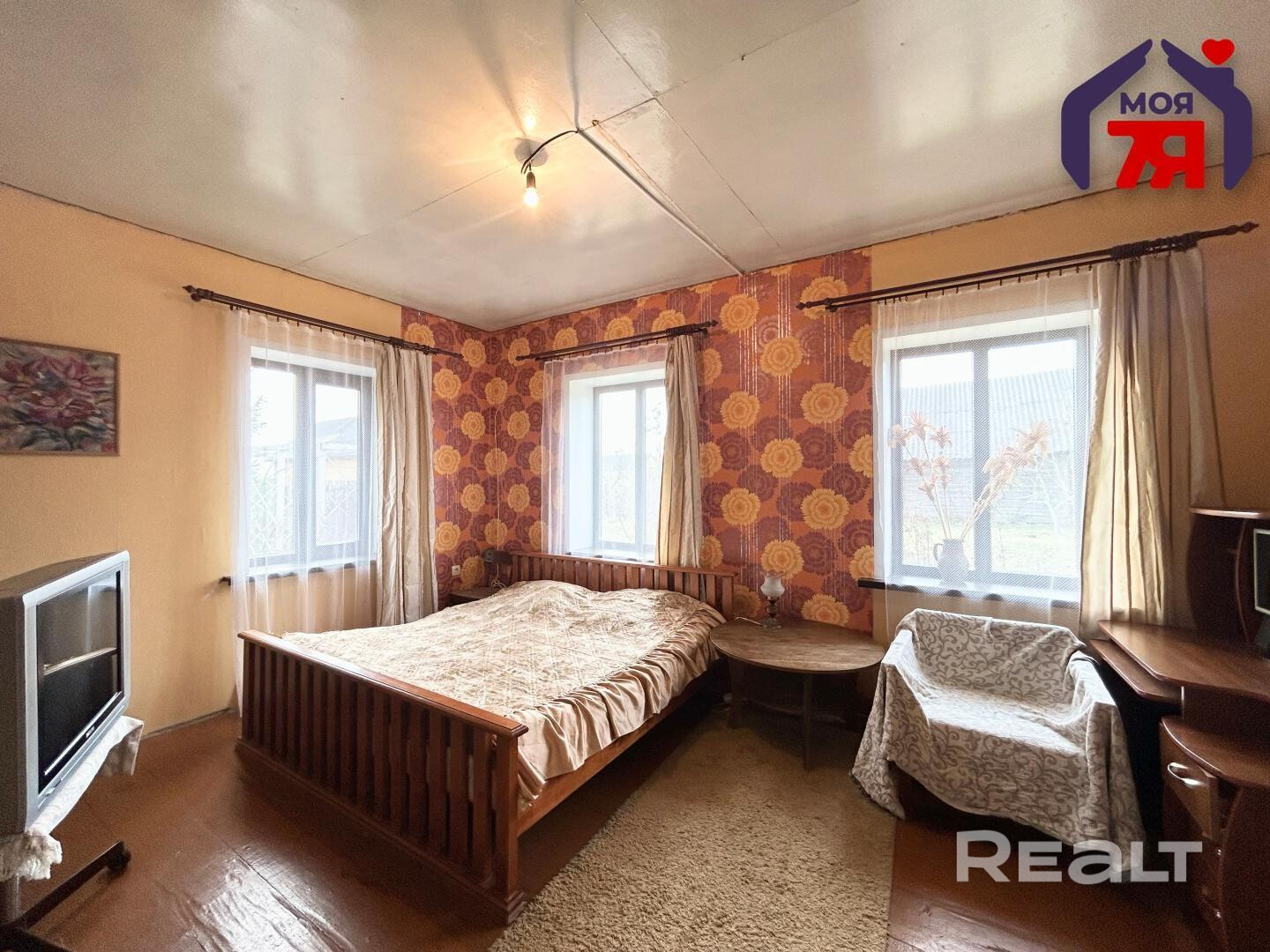 - Высокие потолки 2.8 м добавляют особый шарм дому. Заменены современные окна ПВХ. Напольное покрытие - дерево.