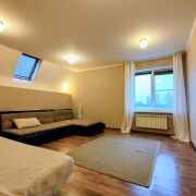 Второй этаж представлен тремя жилыми комнатами – просторной спальней 24,7 м кв. со встроенной вместительной гардеробной, кабинетом 12,6 м кв. с письменным столом и спальным местом, комнатой для гостей 21,2 м кв., санузлом 10,6 м кв. с ванной и окном, коридором 13,3 м кв.