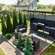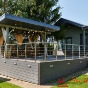 - Терраса из лиственницы 90 м2 с барбекю зоной;