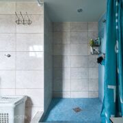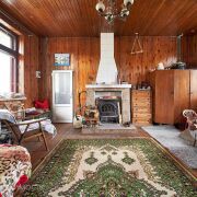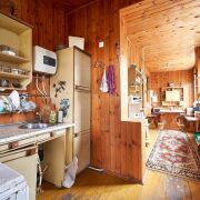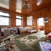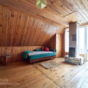В доме два входа. На второй этаж ведет удобная лестница, где распложены еще две жилые комнаты. На первом этаже просторная комната площадью 23.8м2 с камином, также на первом этаже расположена кухня 10.8м2 с обеденной зоной, ванная комната и котельная.