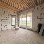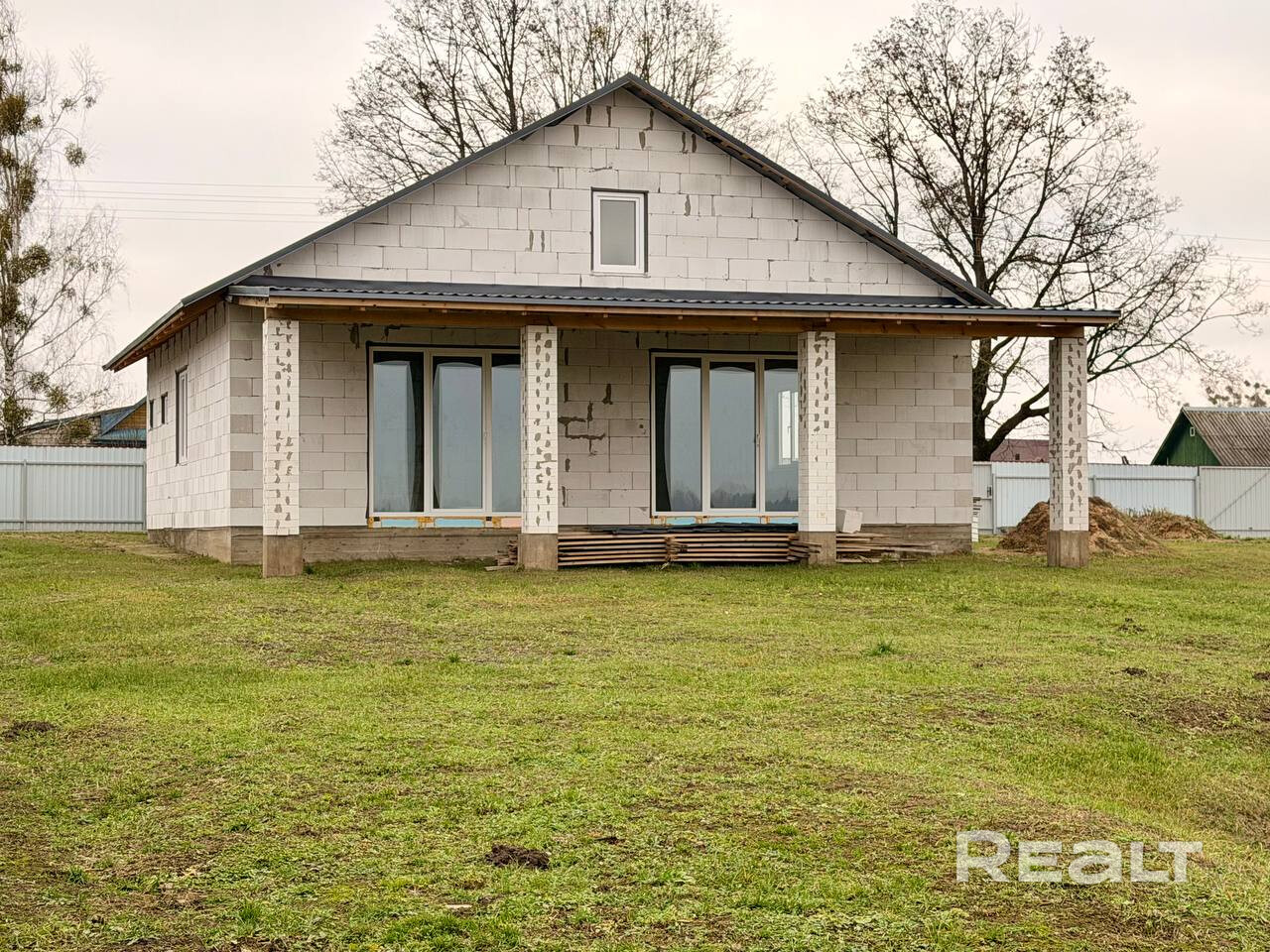 · Уже установлены двухкамерные стеклопакеты, а в гостиной и спальне — панорамные окна с выходом на будущую террасу.