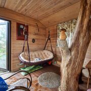 Это домик на вековом дереве с террасой, с высоты которой открываются невероятные виды. Под домиком организована открытая зона отдыха.