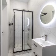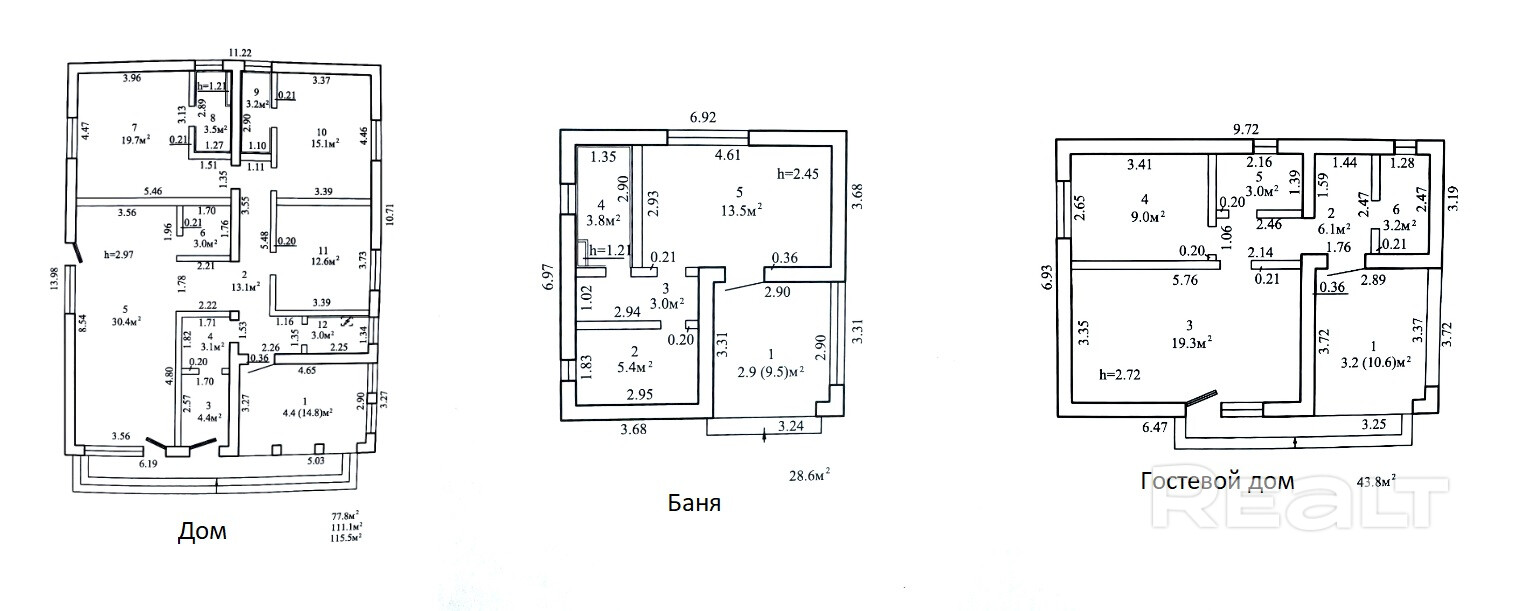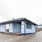Площадь застройки 156,85 м.кв, СНБ 125,9 м.кв, общая 111,1 м.кв, жилая 77,8 м.кв, в том числе кухня-гостиная 30,4 м.кв, общая ванная комната 4,4 м.кв и туалет 3,1 м.кв., две мастер-спальни С/У 3,5 м.кв и 3,2 м.кв. соответственно. Терраса 14,8 м.кв.