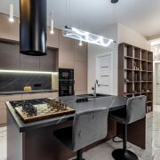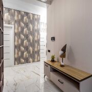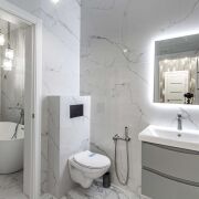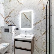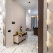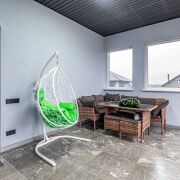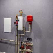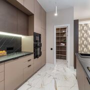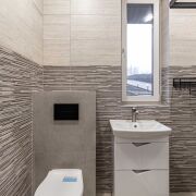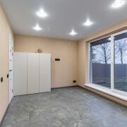 Водяные теплые полы по периметру всего дома за исключением жилых комнат. В кухне-гостиной, санузлах, котельной, коридоре, уложены плиткой. Жилые комнаты ламинат и радиаторы отопления.
