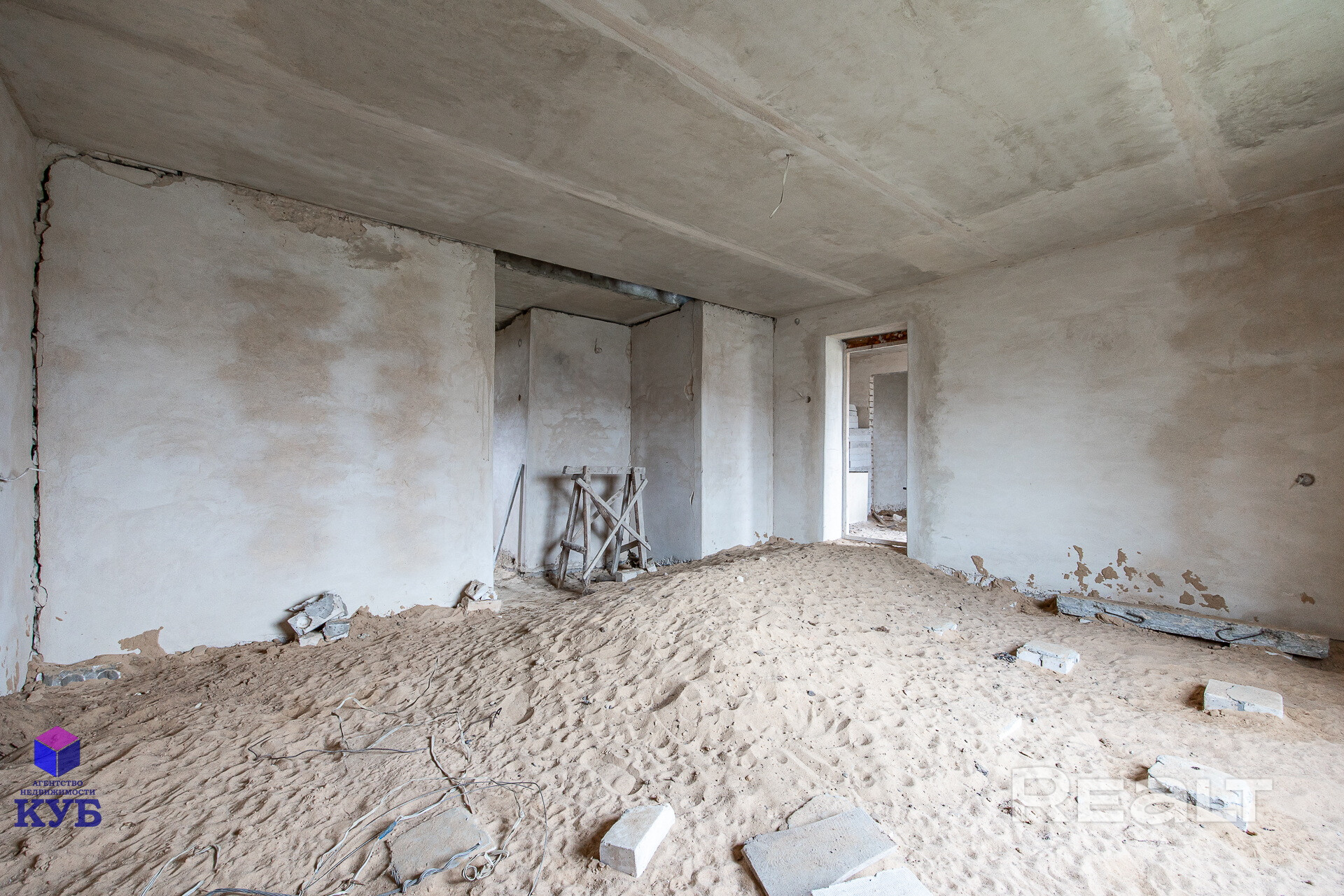 ✅ Фундамент: ж/б плиты ФБС толщиной 40 см. Стены дома из силикатного кирпича (толщина стены в 2 кирпича), перекрытия между этажами – ж/б плиты, стеновые перегородки выполнены из кирпича и газосиликатных блоков, частично оштукатурены. Кровля – шифер, стропильная система – качественный брус, обрешётка.