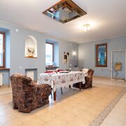 Из обогревательного оборудования в доме имеются две печи грубки, плита с коптильней, два камина, одна большая лежанка 2х1,5 метра, топка сауны.
