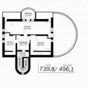 Дом с мансардным и цокольным уровнем, площадью, кв. метров: по СНБ – 739,8/ общая – 496,1/ жилая – 310,4/ кухня – 20,4.