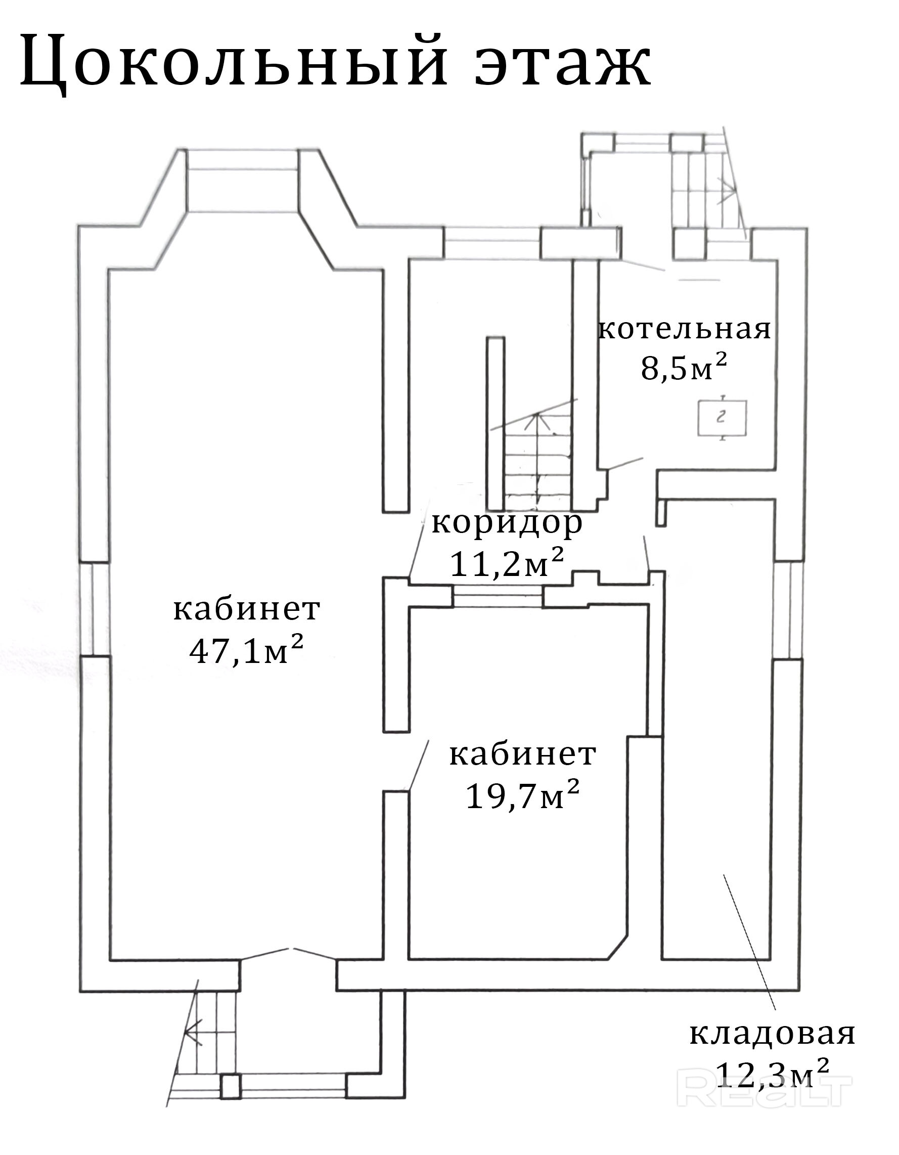 -Цокольный этаж — просторное помещение, идеально подходящее для офиса или технической зоны