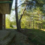 - Трёхуровневый дом 2020 года построен из оцилиндрованного бревна в технике канадского сруба. Такая технология обеспечивает экологичность, долговечность и уникальный микроклимат. Фундамент из блоков гарантирует устойчивость и безопасность строения.