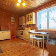 Дом деревянный, обшит сайдингом. На первом этаже 2 раздельные комнаты, вместительная веранда, просторный холл, кухня 17 кв.м. с русской печью и балконом! Санузел совмещенный. Удобная резная лестница с правильным и комфортным подъёмом ведет на второй этаж, где расположены еще 2 раздельные комнаты, одна из которых с балконом.