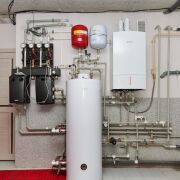-Современная топочная с погодозависимой автоматикой, отопление на газовом котле, насосные группы, радиаторы, водяные тёплые полы, бойлер;