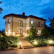 -Земельный участок 15 соток, ландшафтный дизайн; газон, противокротовая сетка, автоматический полив, декоративное освещение, мощение тротуарной плиткой, ливневая канализация;
