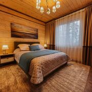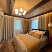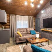 • Гостевой дом 87,5 кв.м. (утепленный полубрус, утепленная монолитная плита): 1 спальня, каминный зал, большой совмещенный санузел, обеденная зона, подсобное помещение, веранда с мебелью.