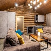 • Баня (бревно ручной рубки 350+, утепленная монолитная плита): комната отдыха, парная на дровах, 2 душевые кабины, санузел, раздевалка, веранда с мебелью, купель на дровах.